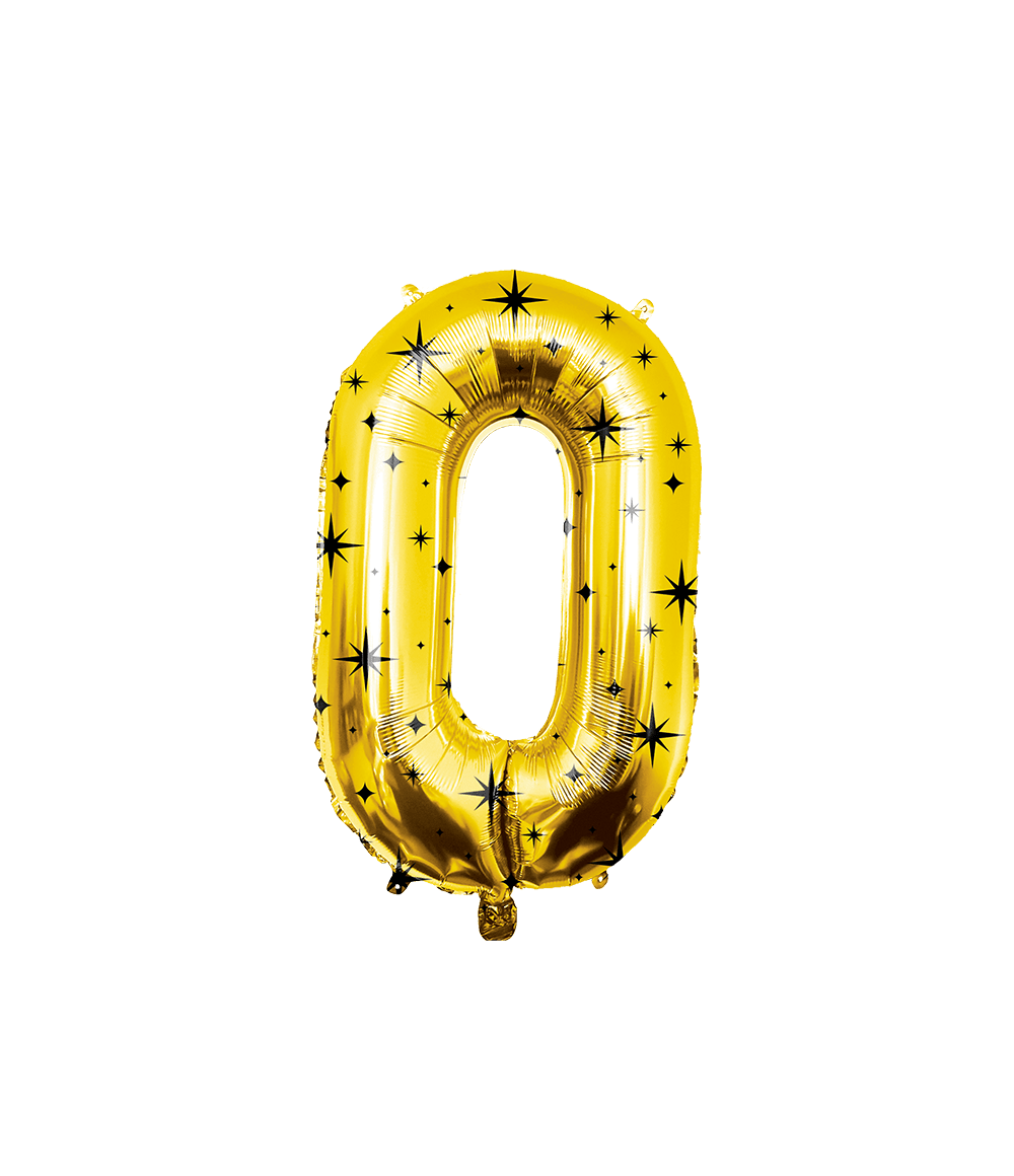 0 års figurballon guld sorte stjerner 86 cm