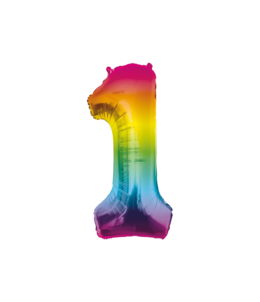 1 års heliumballon regnbue tom 86 cm
