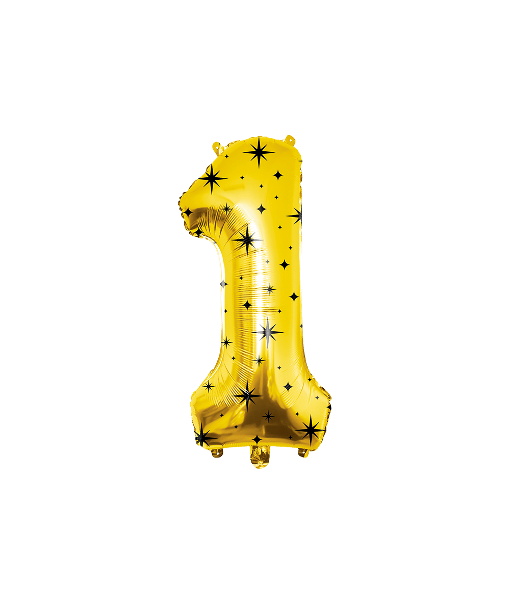 1 års figurballon guld sorte stjerner 86 cm