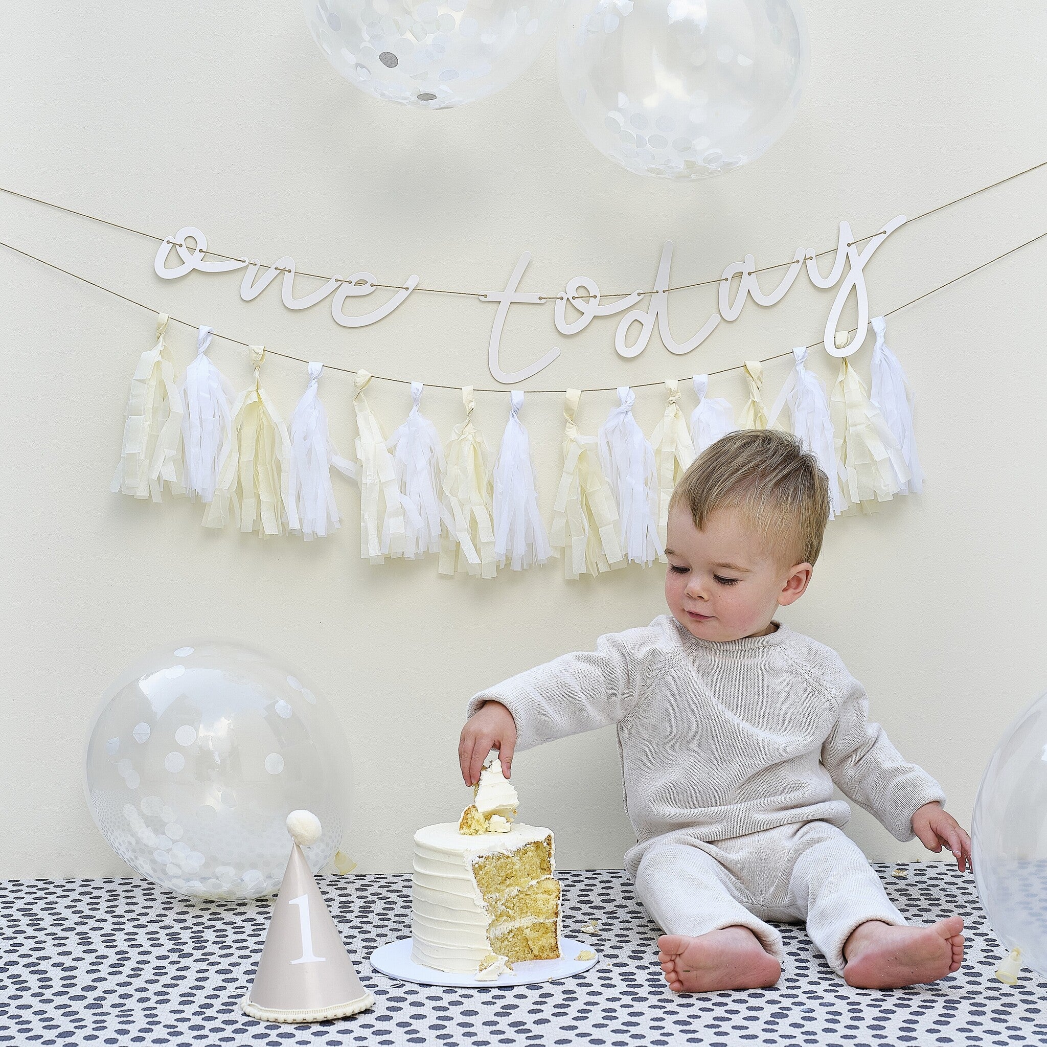 Skab en helt særlig første fødselsdagsfest med denne smukke, neutrale første fødselsdagskollektion.