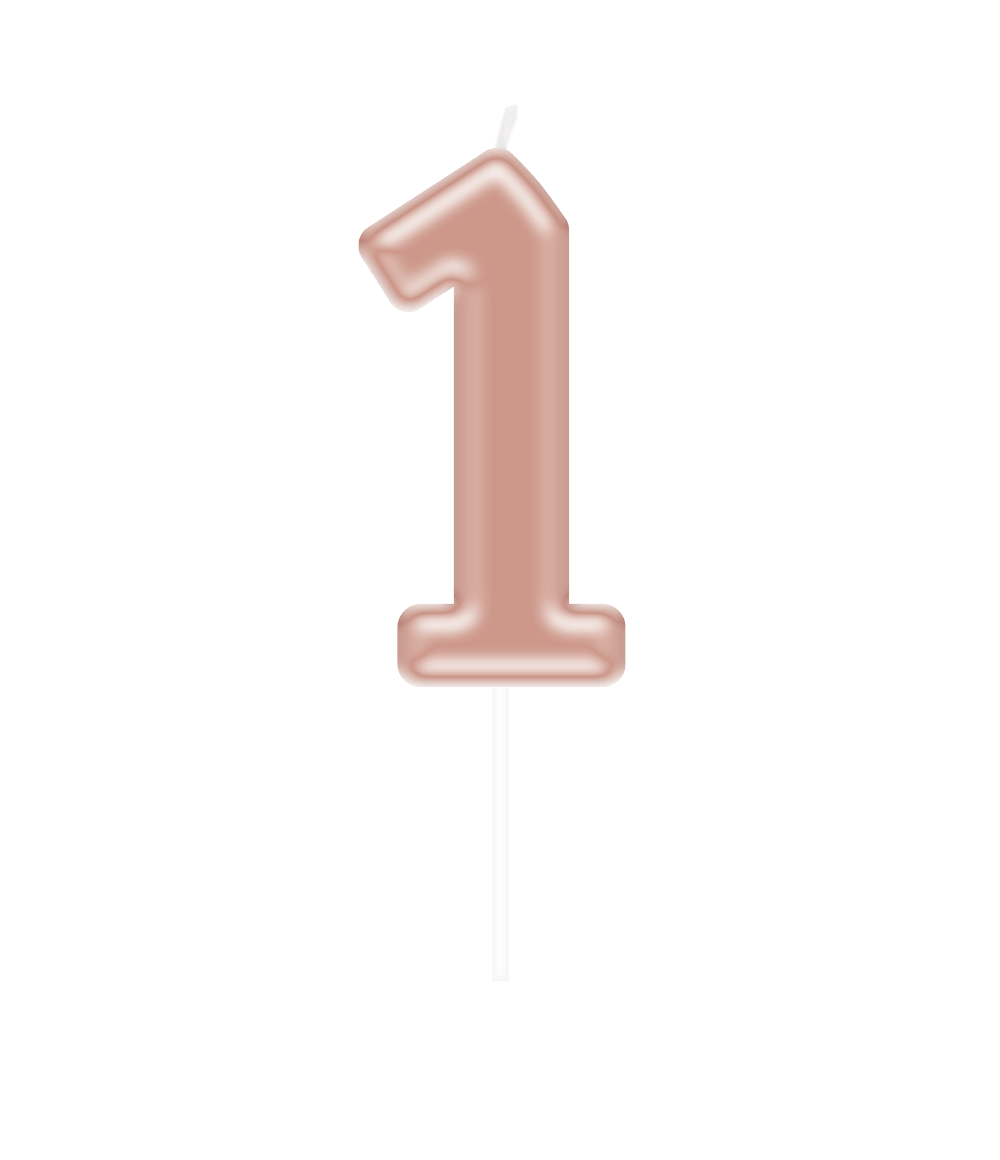 Fejr hver milepæl med stil med dette tallys i rosaguld "1". Perfekt til at markere aldre, jubilæumsnumre eller andre særlige lejligheder. Den skinnende rosaguldfarve får lyset til at skille sig ud på enhver kage eller cupcake.
