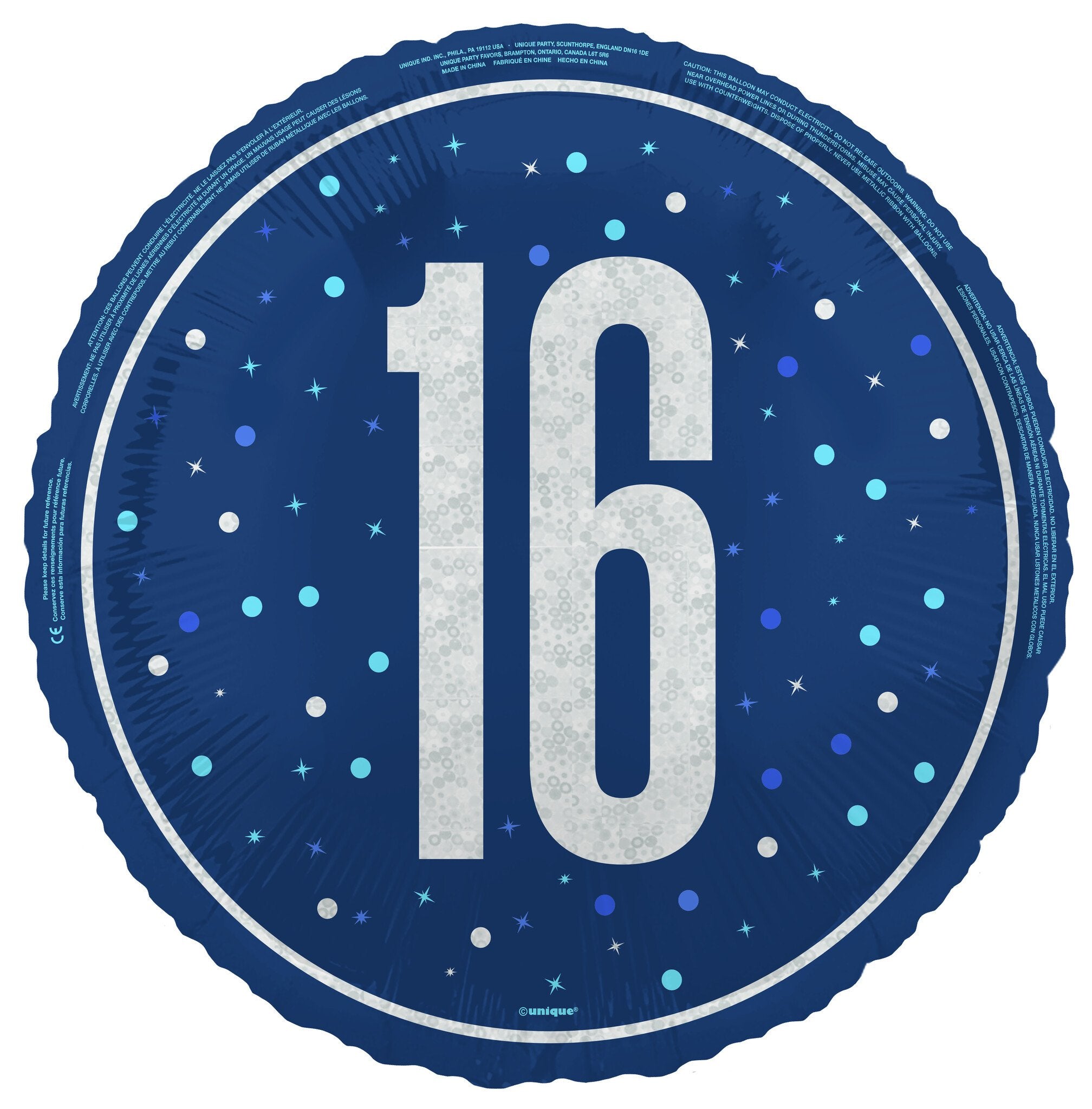16 års heliumballon blå tom 45 cm