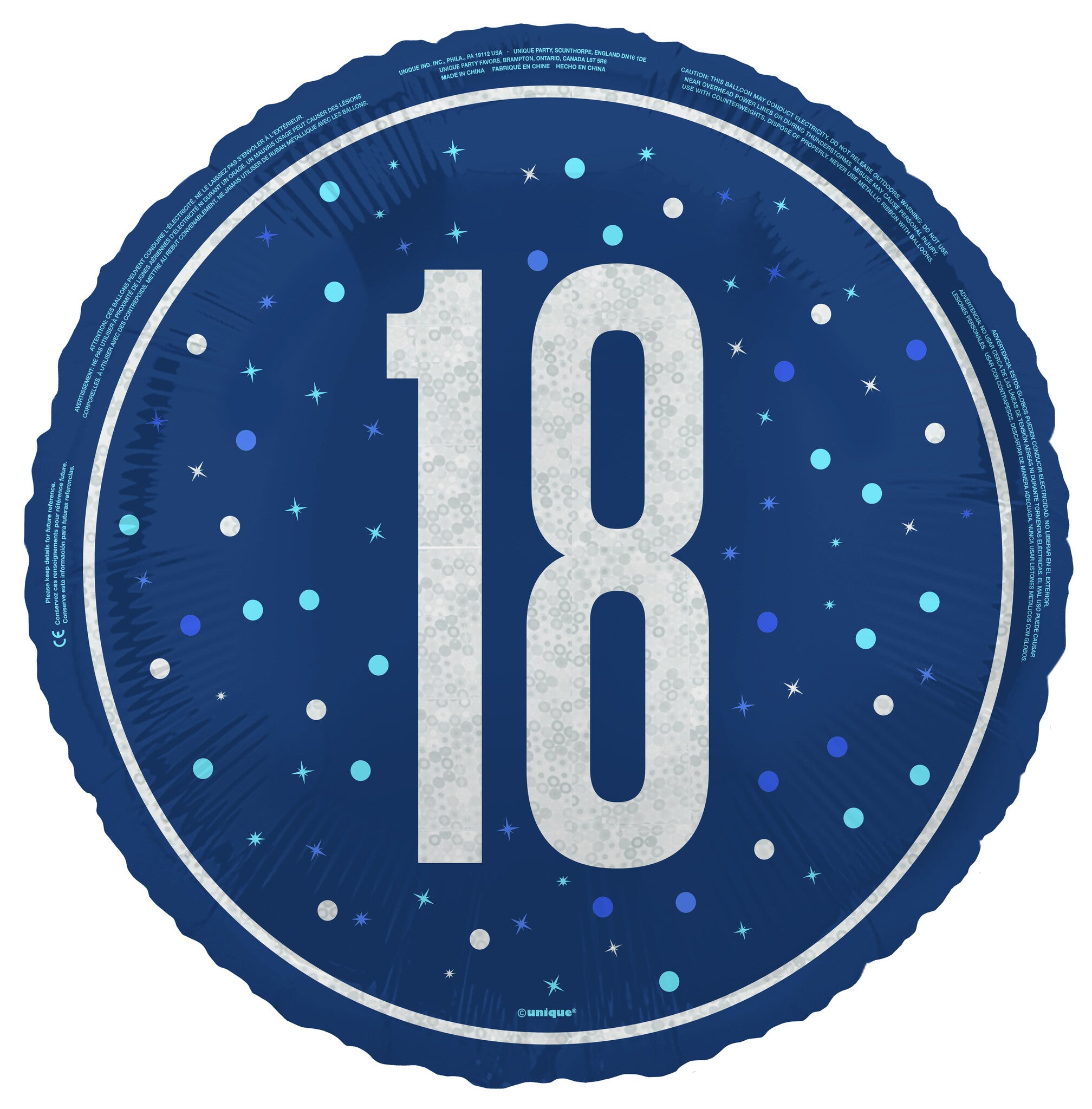 18 års heliumballon blå tom 45 cm