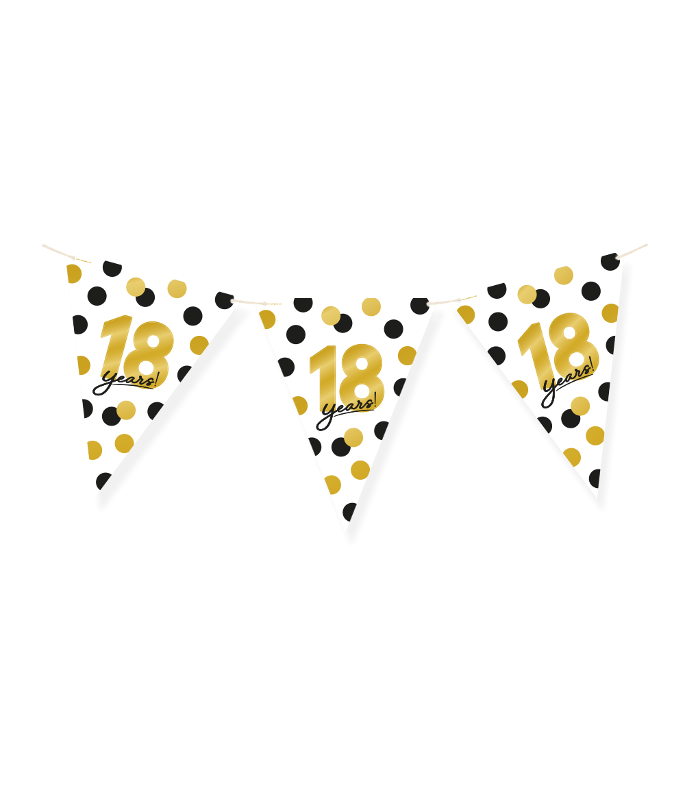 Papirflagene Celebration! papirflag - 18 er de perfekte flag til at pifte en fest op for en 18-årig! Denne flagserie skiller sig ud med sit karakteristiske design, og fordi flagene er lavet af papir, tænker du også på miljøet! Papirflagene er 6 meter lange. Kombiner dem med de matchende celebration! balloner!
