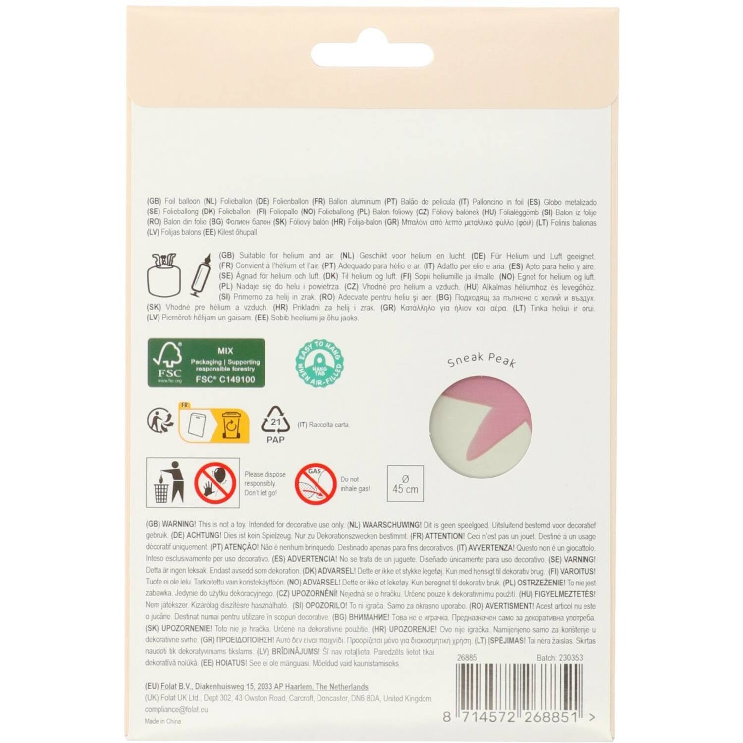 18 års heliumballon tom 45 cm