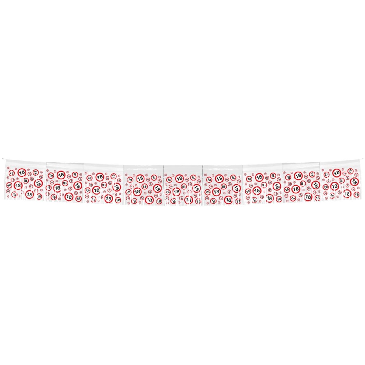 De 18 Jaar Verkeersbord Franje Slinger is een opvallende decoratie voor een bijzondere mijlpaal. Met een lengte van 6 meter is deze slinger ideaal om een feestruimte snel en eenvoudig feestelijk aan te kleden. Het kleurrijke verkeersborddesign in combinatie met de franjes zorgt voor een speelse en feestelijke uitstraling. Geschikt voor zowel binnen- als buitengebruik.