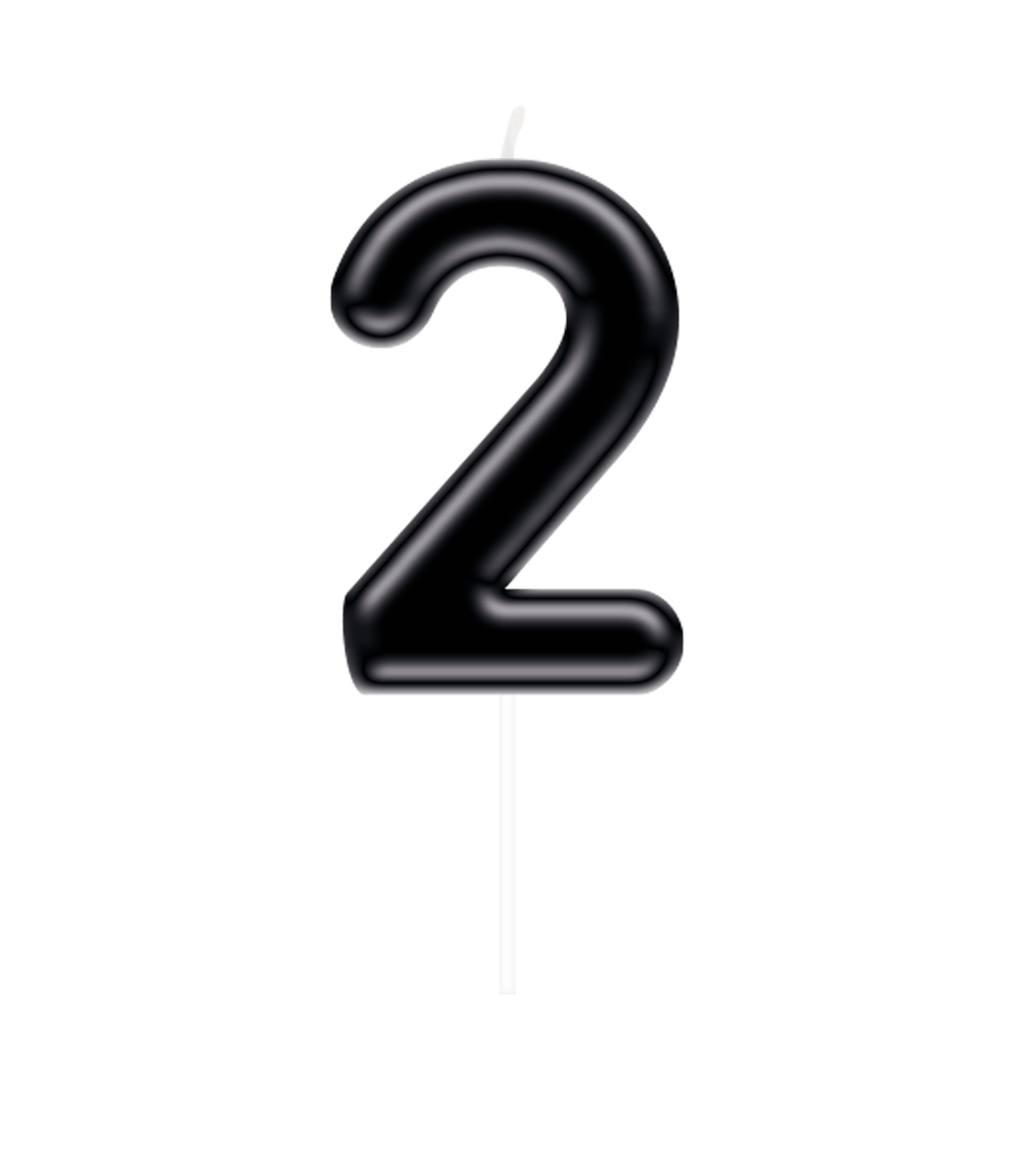 Fejr hver milepæl med stil med dette sorte tallys "2". Perfekt til at markere aldre, jubilæumsnumre eller andre særlige lejligheder. Den sorte farve får lyset til at skille sig ud på enhver kage eller cupcake.