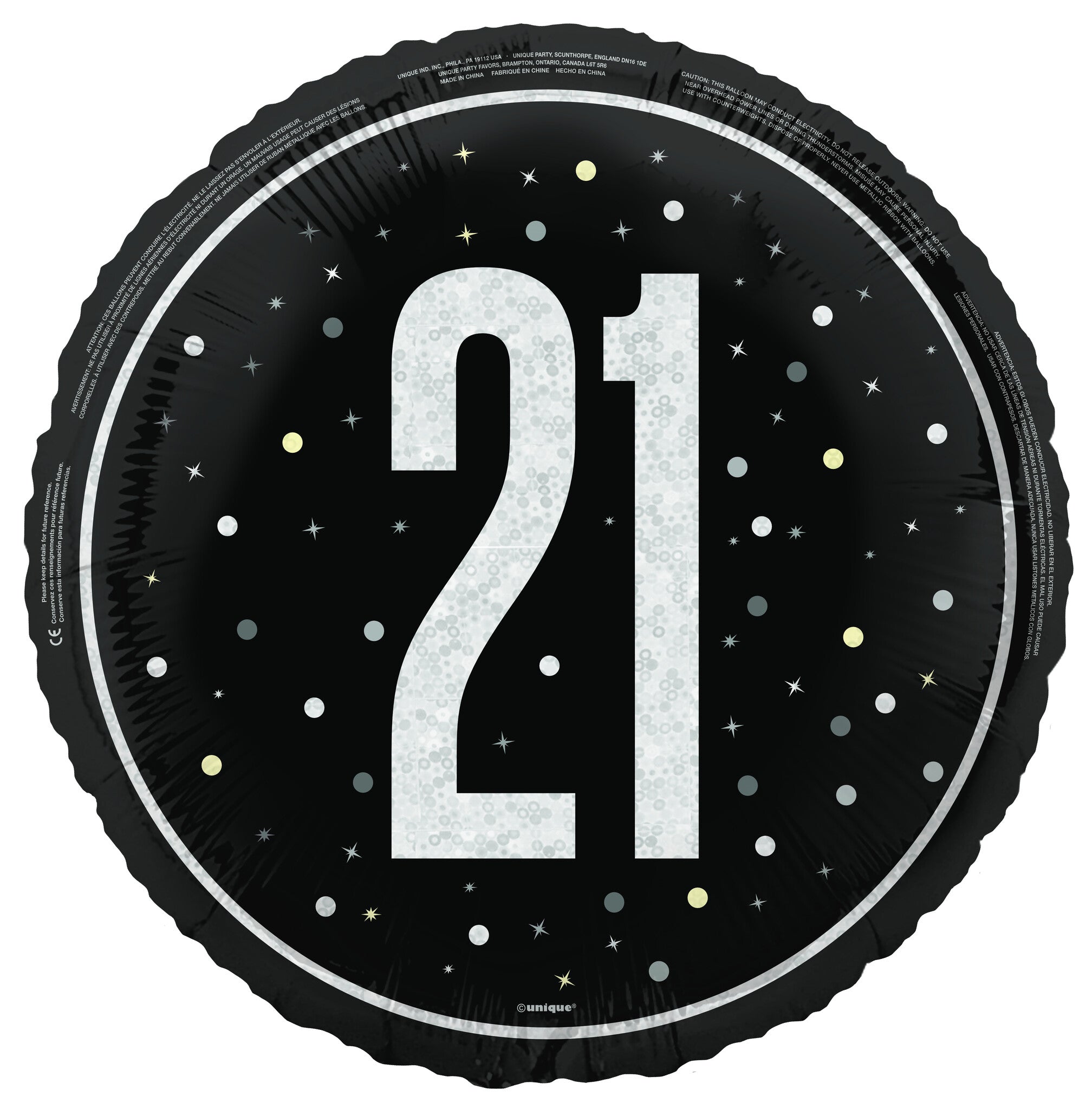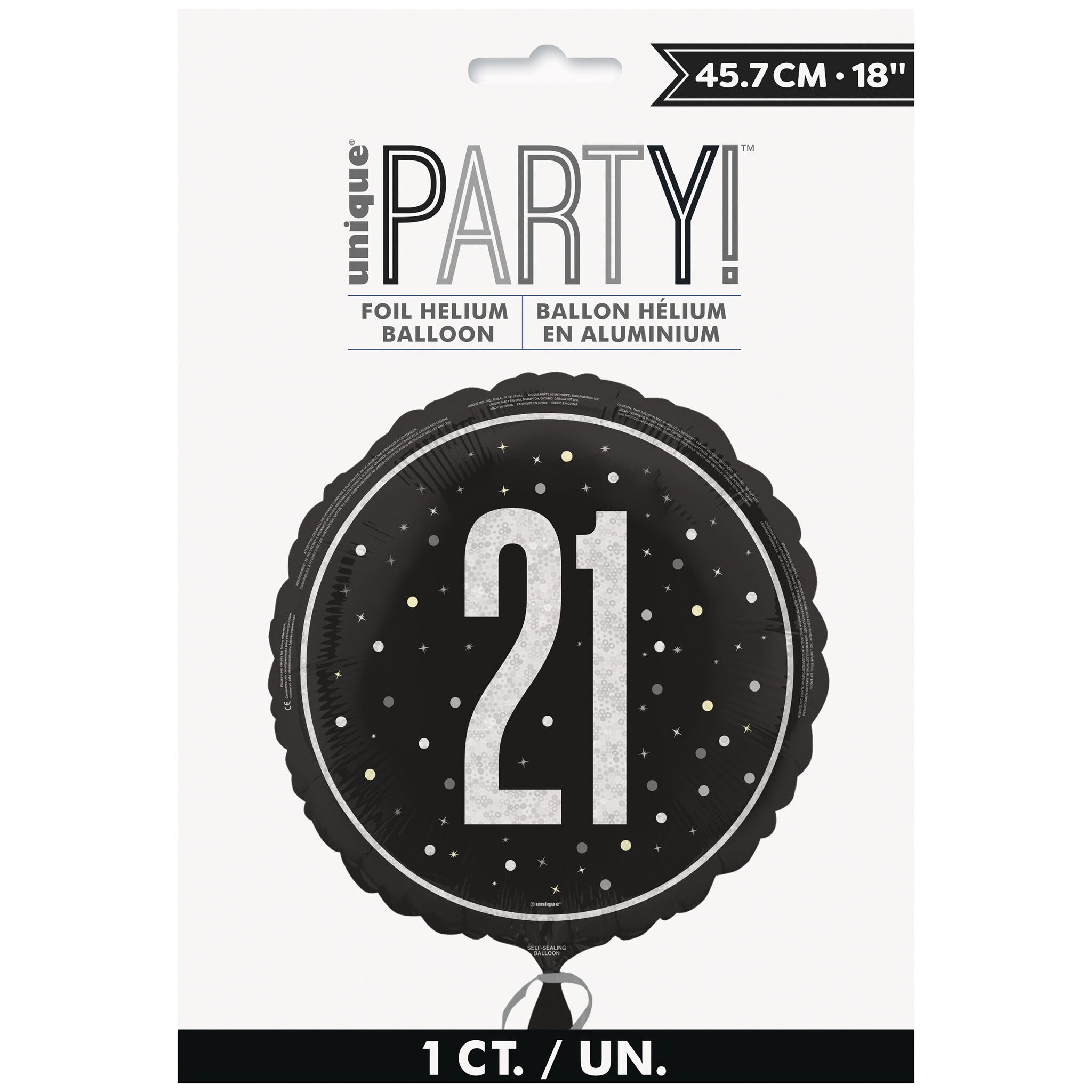 21 års heliumballon sort tom 45 cm