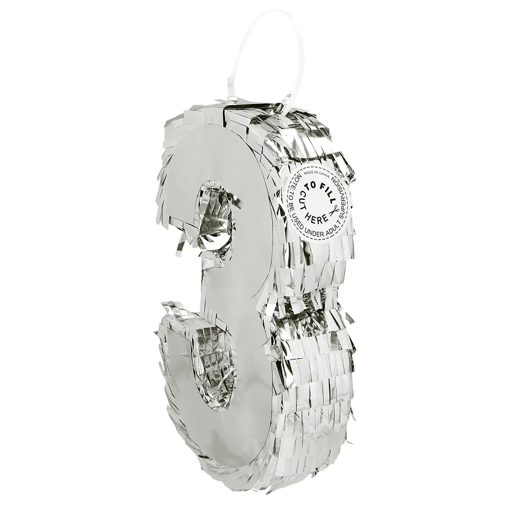 Denne fantastiske sølvpinata i form af tallet '3' er perfekt til at fejre fødselsdage og særlige lejligheder. Med sine 25 cm vil den med garanti være et blikfang til enhver fest.