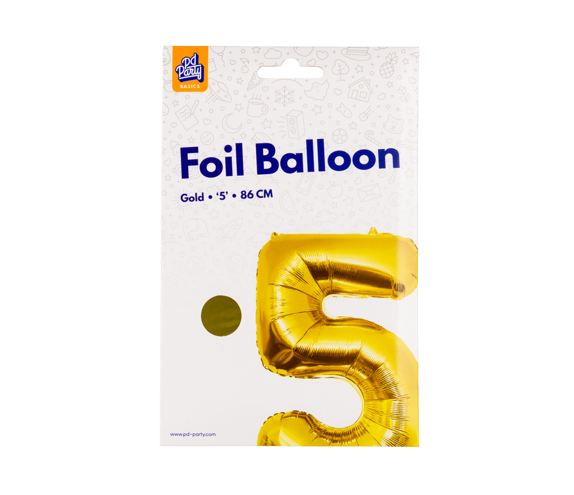 De gyldne talballoner fra Basic-kollektionen fra Paper Dreams er den ideelle tilføjelse til at forvandle enhver lejlighed til en festlig og munter atmosfære. Uanset om det er en fødselsdag, et jubilæum, et bryllup eller en anden særlig fest, vil folieballon guld - nr. 5 tilføre gnist til ethvert rum. Denne store guldtalsballon måler hele 86 cm, hvilket gør den til et ægte blikfang.