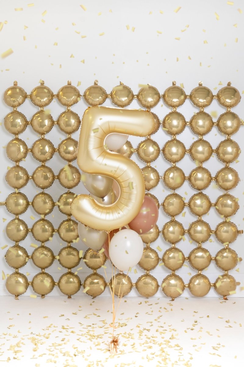 5 års figurballon guld satinfolie tom 86 cm