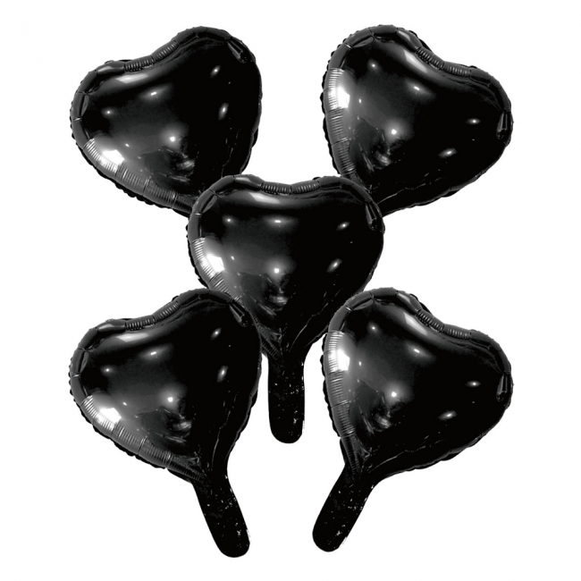 5 folieballoner hjerte med papirstrå 9" sort