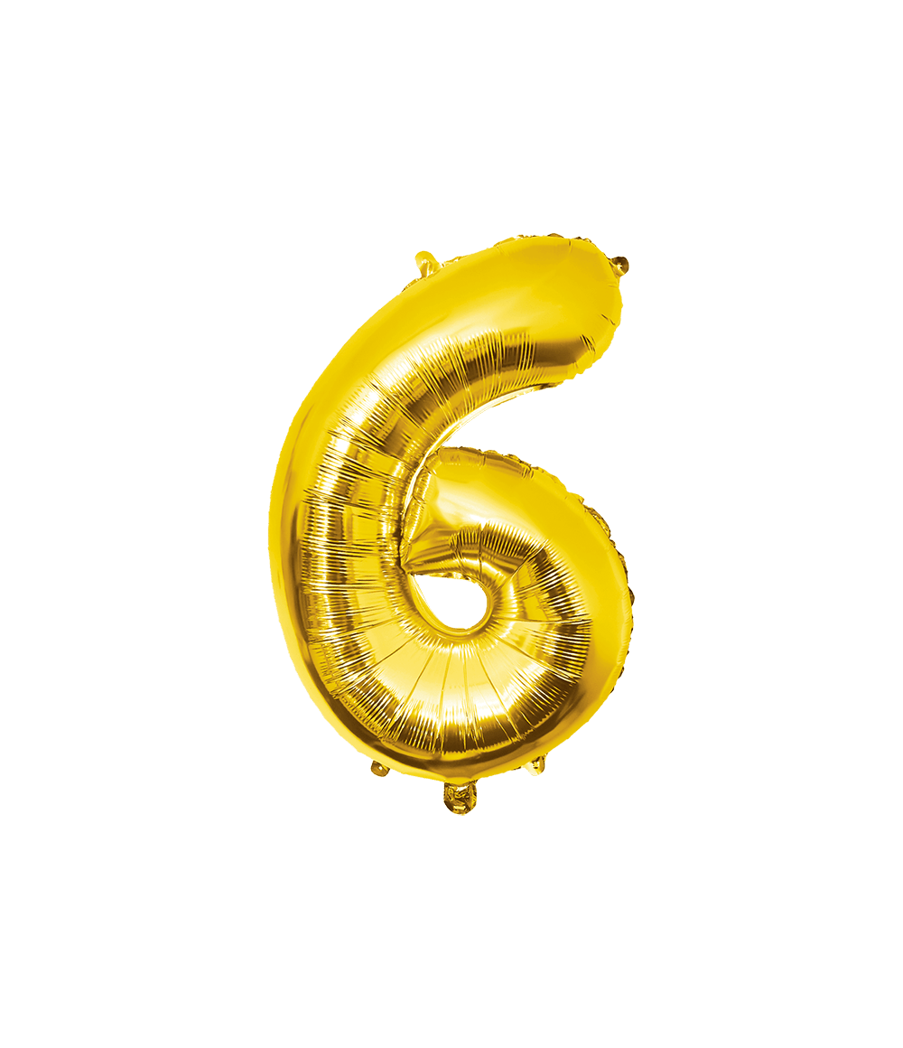 6 års figurballon guld tom 86 cm