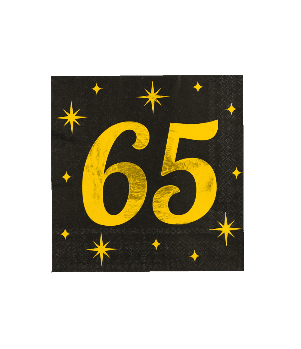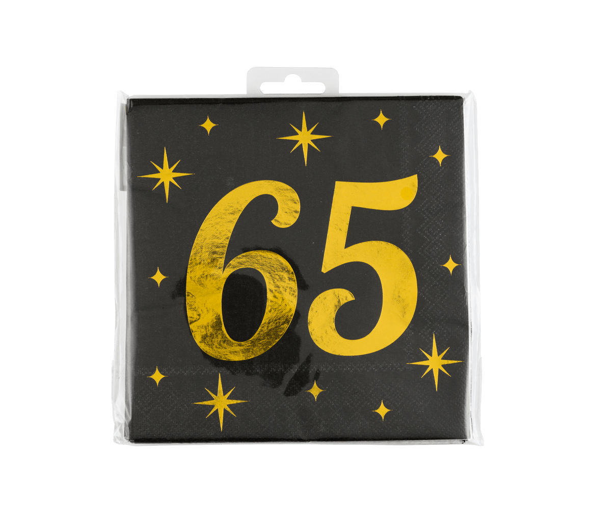 65 års servietter sort guld 19 cm 16 stk
