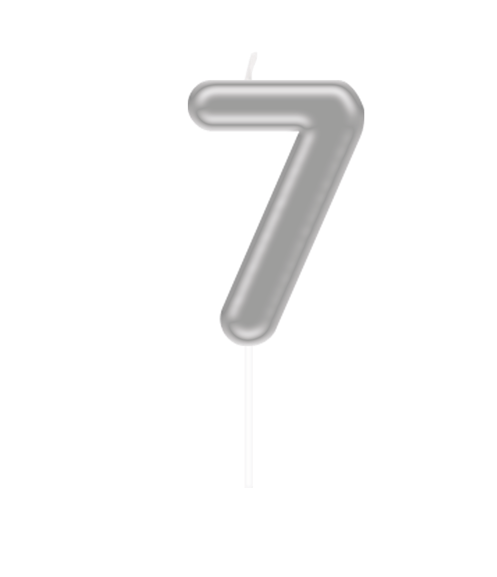 Fejr enhver milepæl med stil med dette sølvfarvede tallys "7". Perfekt til at markere aldre, jubilæumsnumre eller andre særlige lejligheder. Den skinnende sølvfarve får lyset til at skille sig ud på enhver kage eller cupcake.