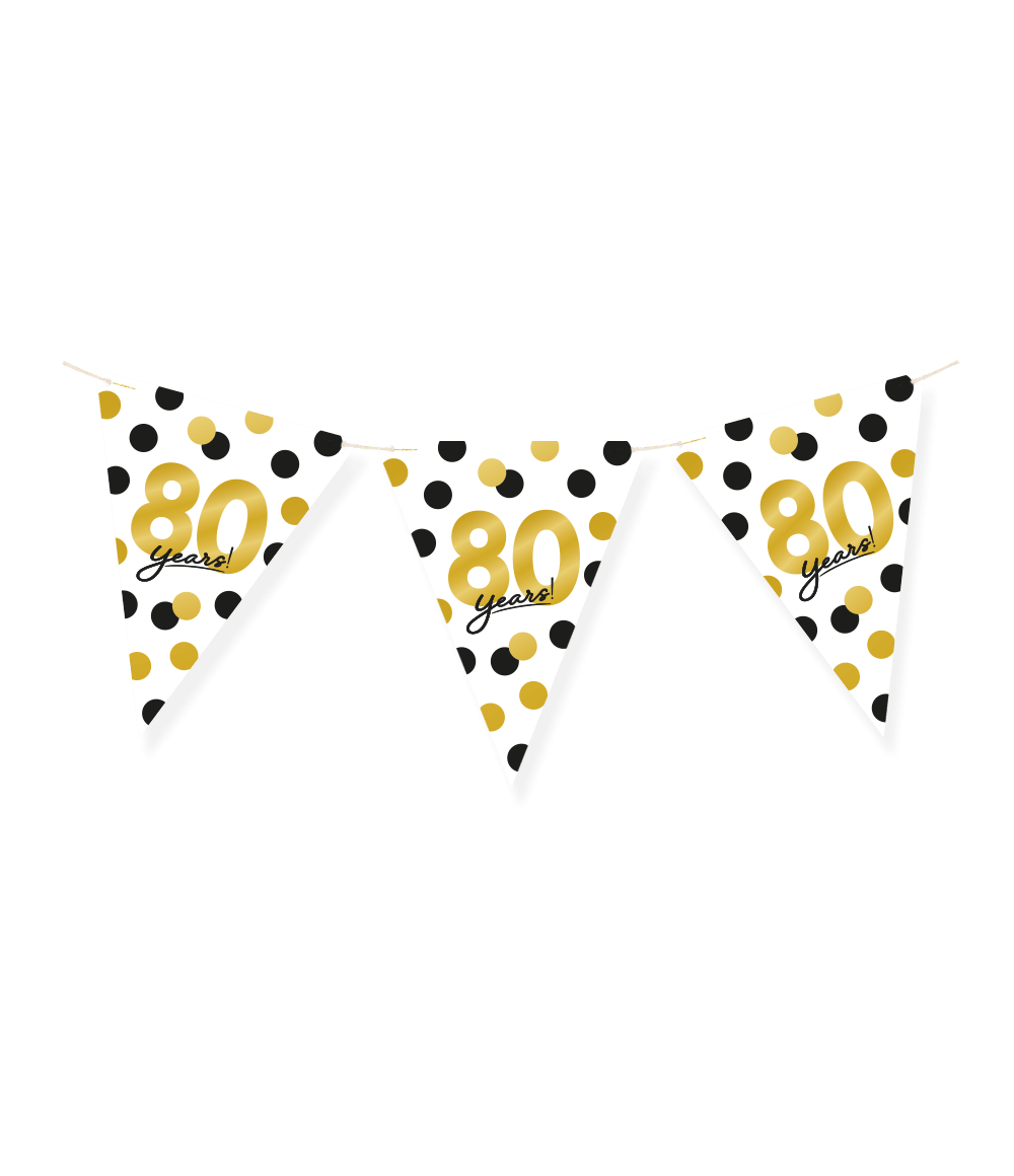 Papirflagene Celebration! papirflag - 80 er de perfekte flag til at sætte gang i en fest for en 80-årig! Denne flagserie skiller sig ud med sit karakteristiske design, og fordi flagene er lavet af papir, tænker du også på miljøet! Papirflagene er 6 meter lange. Kombiner dem med de matchende celebration! balloner!