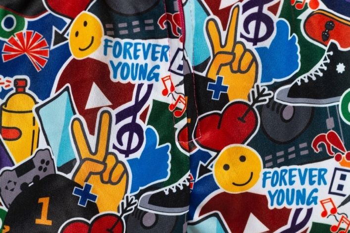 Farve: Flerfarvet (typisk 80'er-design)