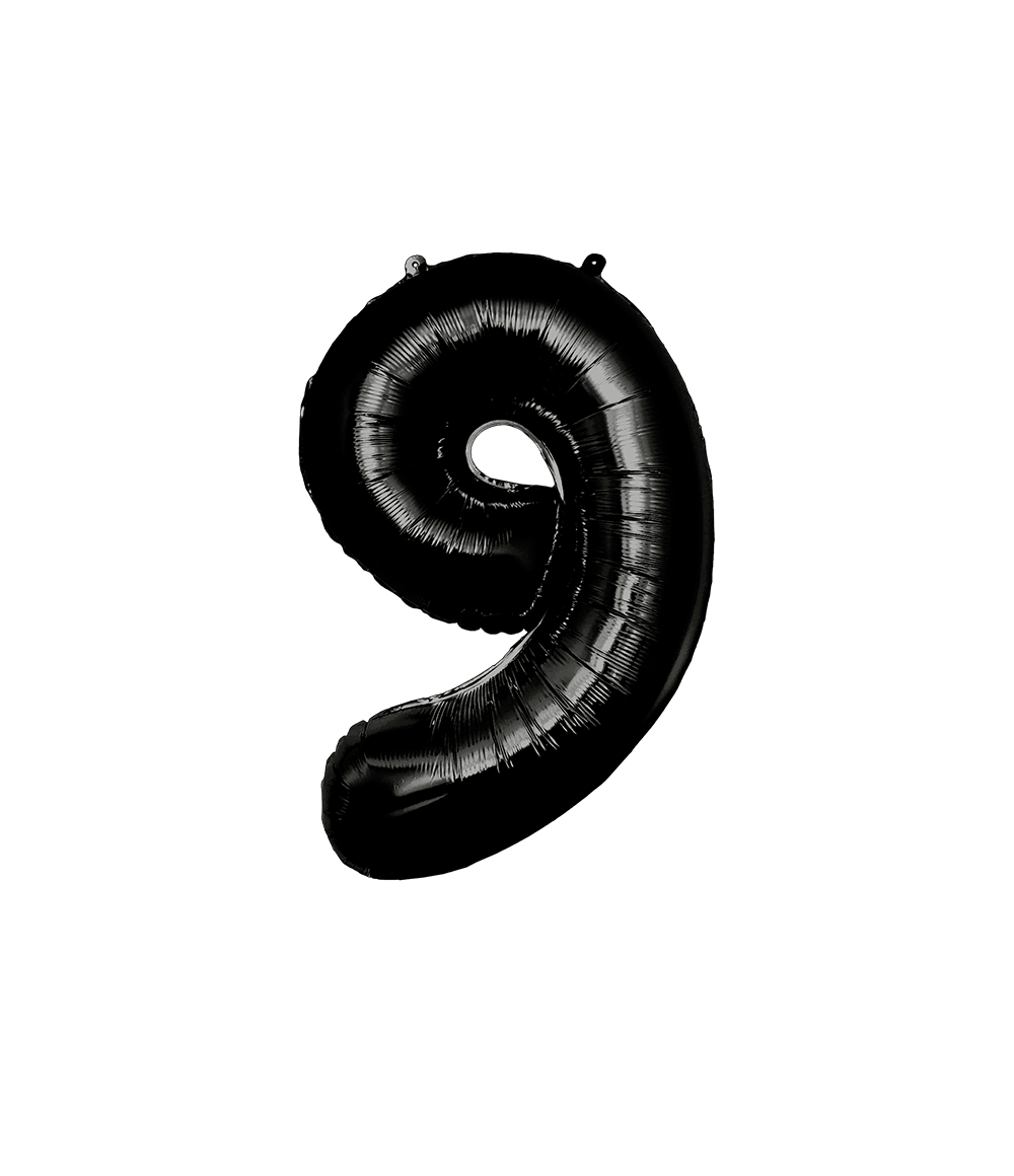 9 års figurballon sort 86 cm