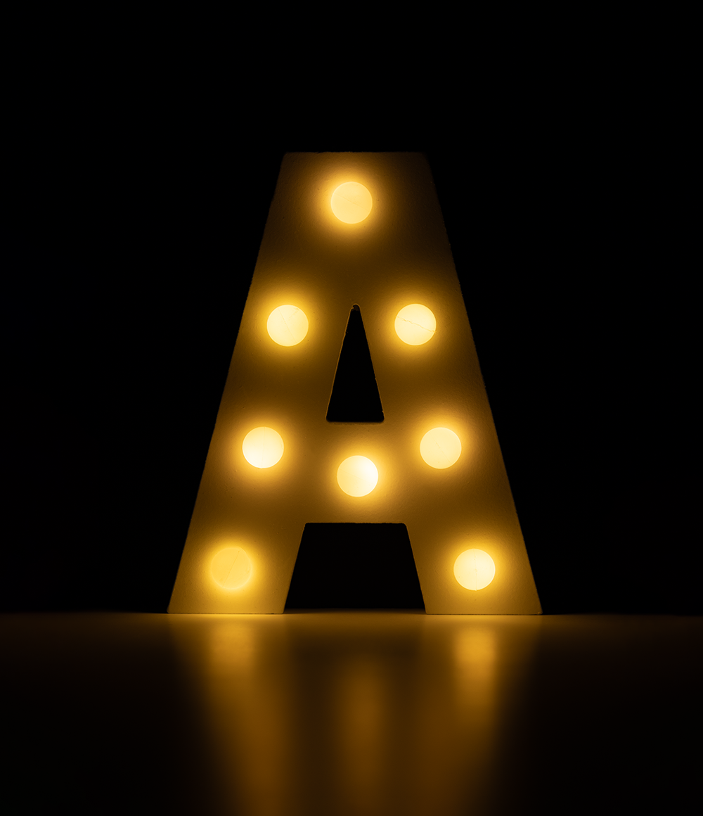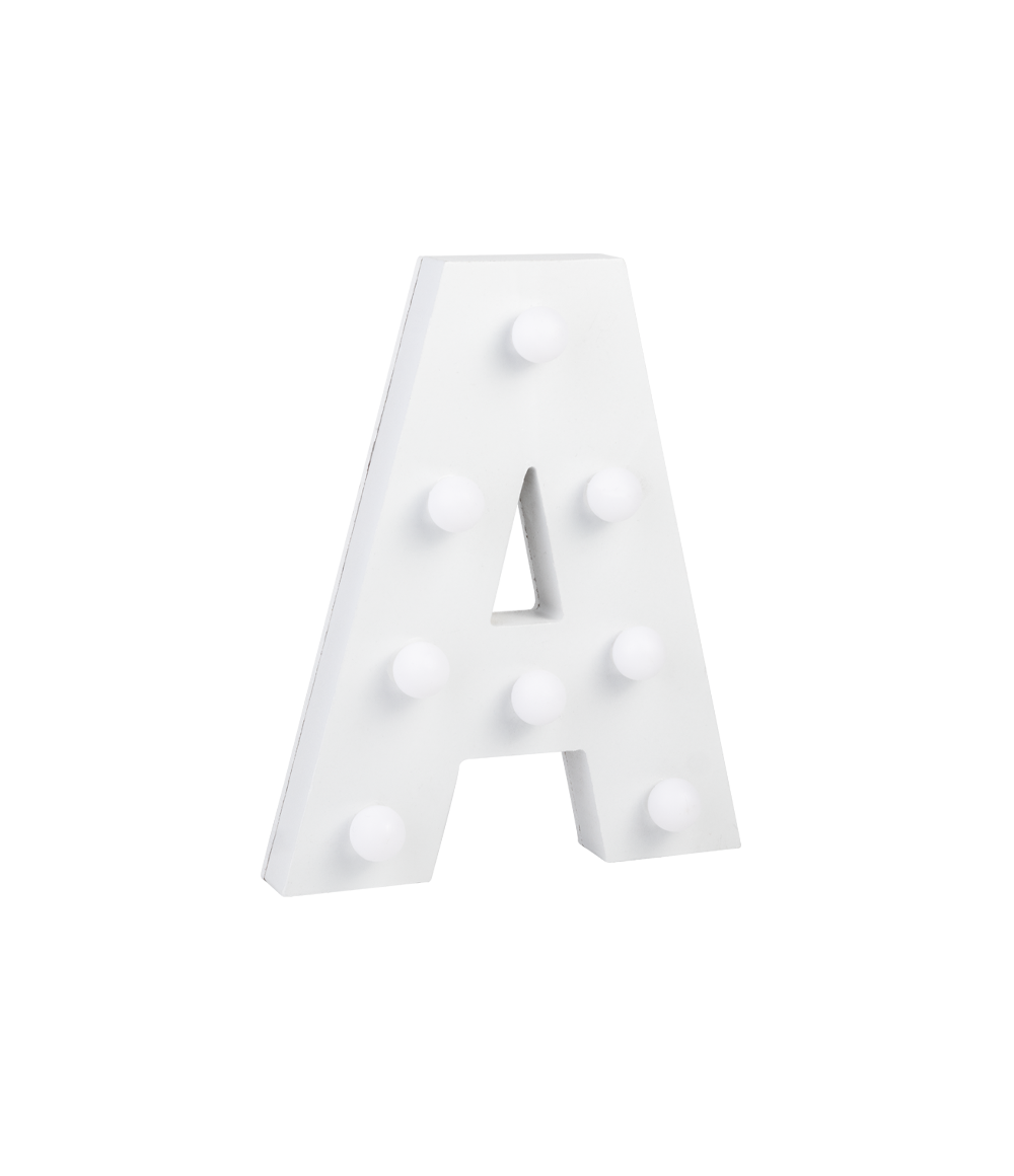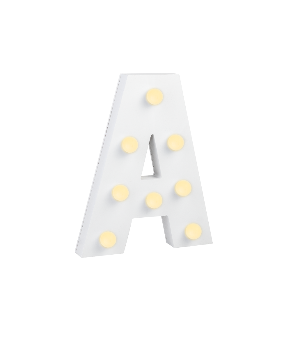De lyse bogstaver giver dig mulighed for at skabe dine egne ord og sætninger på stemningsfulde måder. Et batteri medfølger.