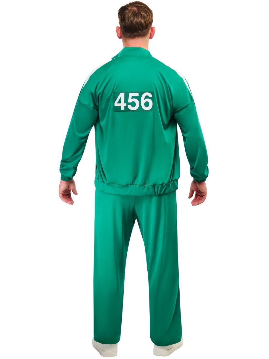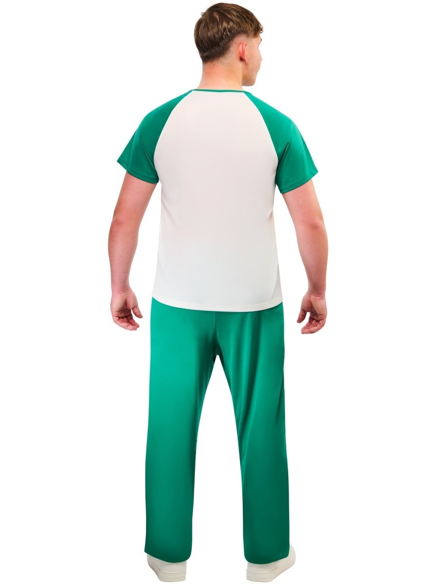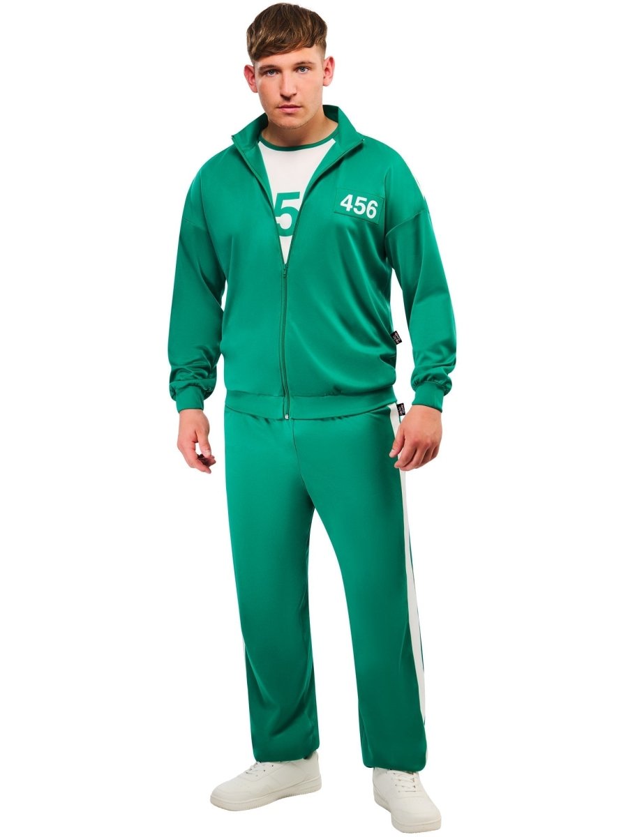 Træd ind i den uforudsigelige verden i Squid Game med dette sæt bestående af bukser, T-shirt og jakke. Hver eneste detalje inviterer dig til at opleve det spændende drama om overlevelse og strategi - vil du overleve?