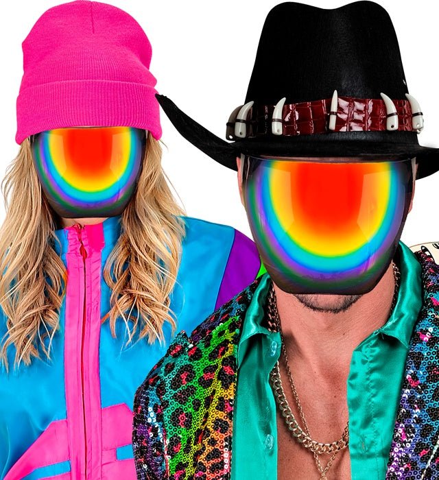 Beskyt dig selv stilfuldt med dette ansigtsskjold med regnbuespejl, perfekt til udklædningsfester, cosplay, festivaler eller som iøjnefaldende tilbehør.