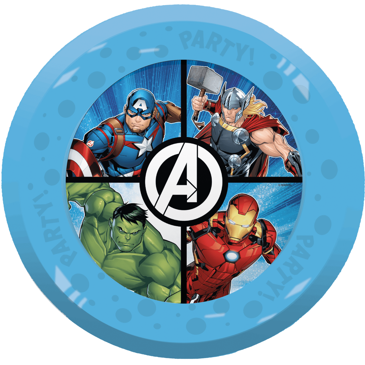 Robuste Avengers-tallerkener, perfekte til fest, picnic eller hverdagsbrug. De robuste plasttallerkener har et farverigt print af velkendte Marvel-helte og kan bruges igen og igen.