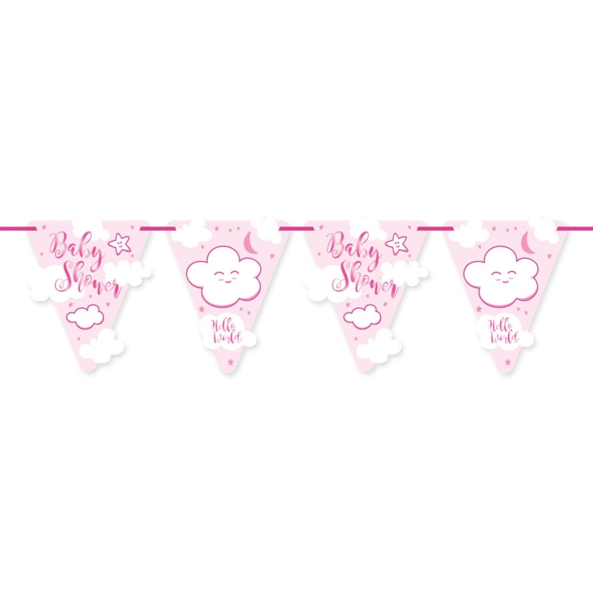 Pink Babyshower Girl Flagline - 6 meter. Indhold: 1 flagline på 6 meter. Farve: Pink. Produktets tema: Baby Shower Girl. Kan f.eks. bruges til følgende fest/festanledning: Baby Shower. Denne guirlande er 6 meter lang. Varen er fremstillet af pap.
