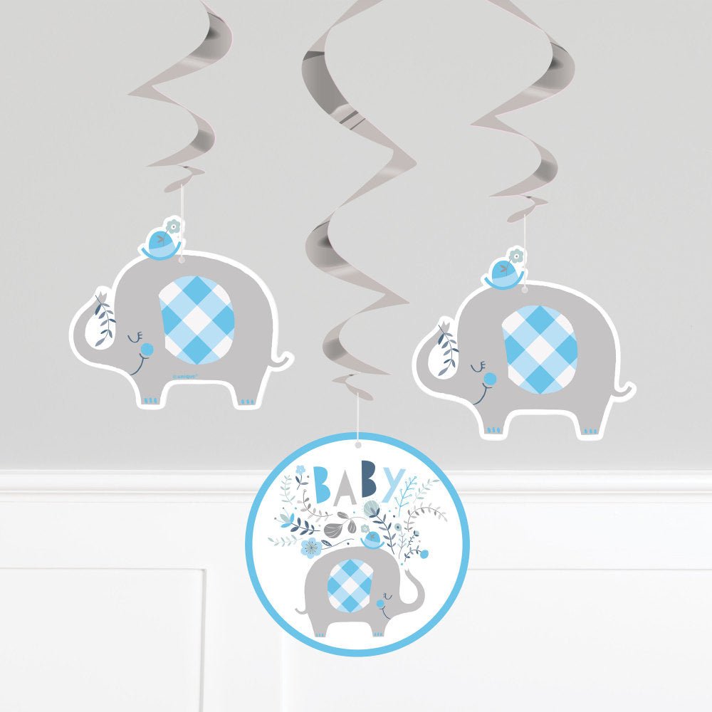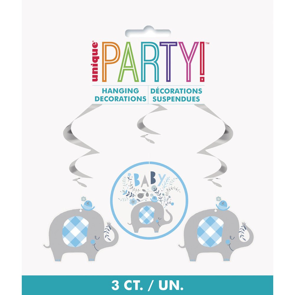 Babyelefant hængende dekoration blå 66 cm 3 stk