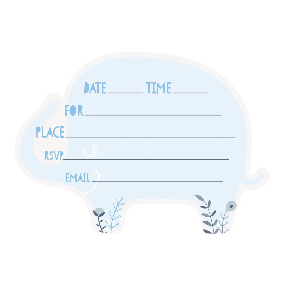 Babyelefant-invitationer blå 8 stk