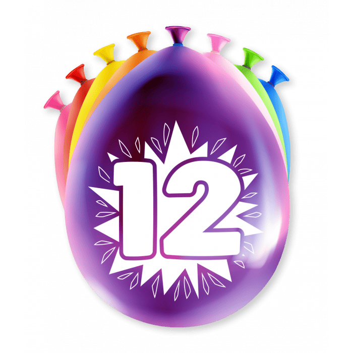 Balloner 12 år flerfarvede 30 cm 8 stk