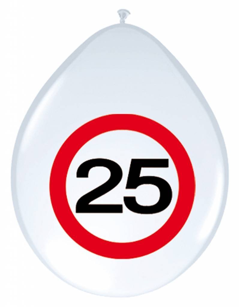 25 års trafikskiltballoner - 8 stk. Indhold: 8 latexballoner. Kan f.eks. bruges til følgende fester/anledninger: fødselsdag, jubilæum. Hver ballon måler 12 tommer/30 cm. Varen er fremstillet af latex.