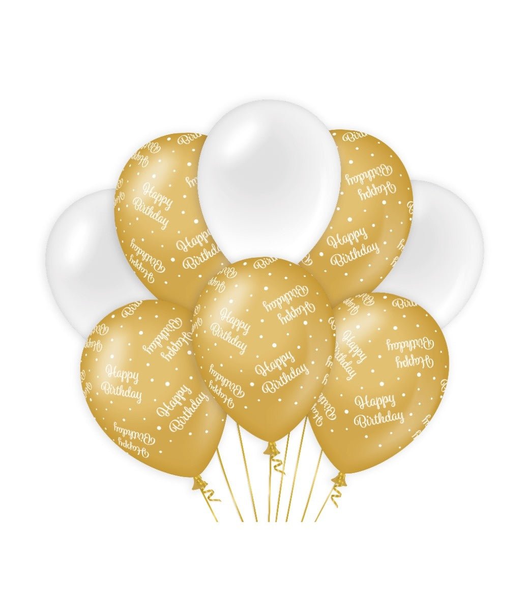 Balloner Happy Birthday Guld Hvid 30cm 8stk