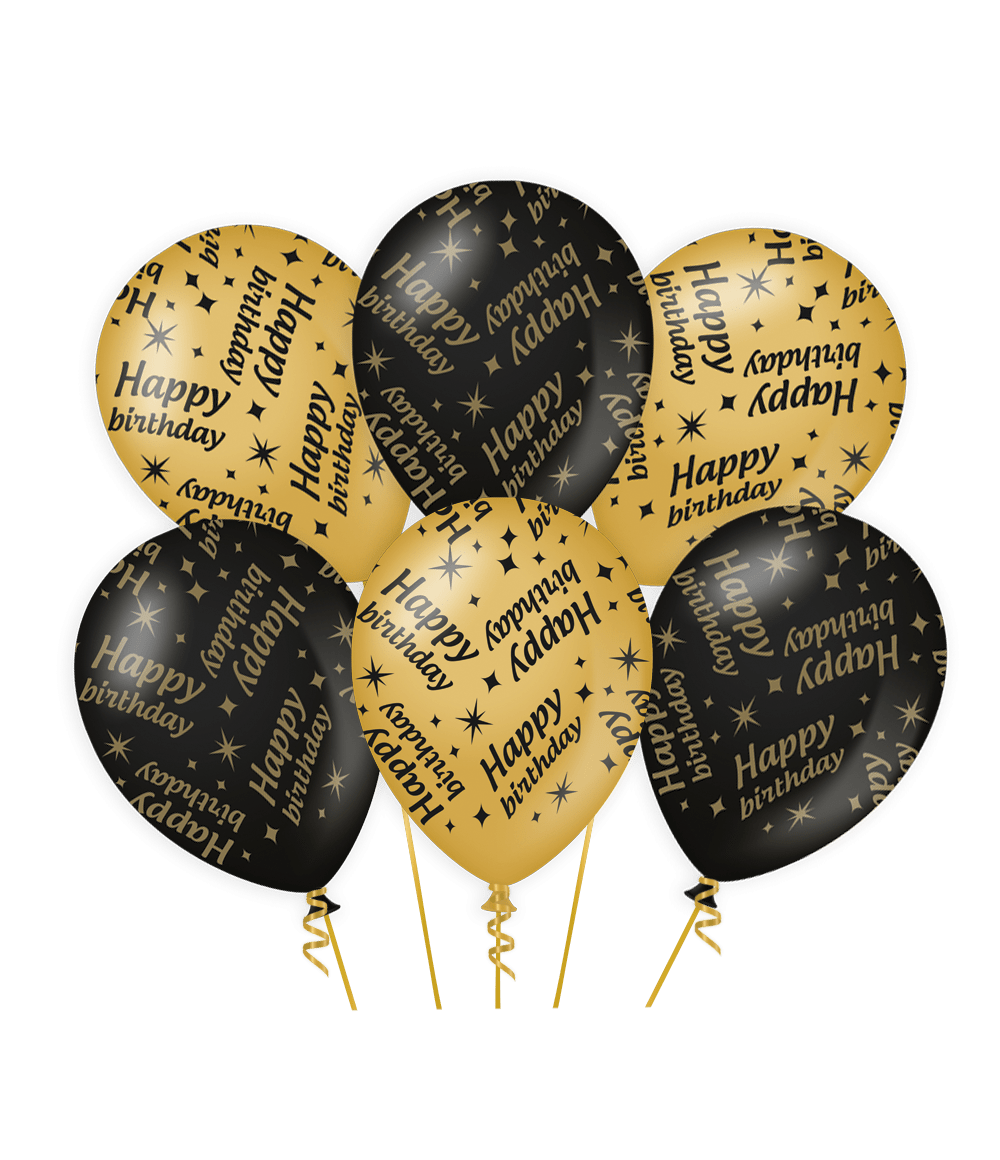 Balloner Happy Birthday Guld Sort 30cm 6stk
