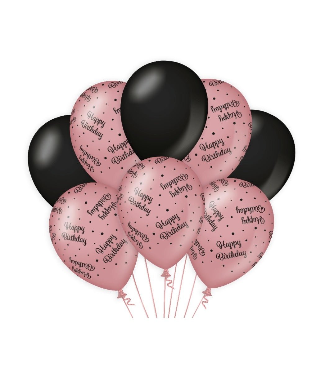 Balloner Happy Birthday Rose Black 30cm 8stk