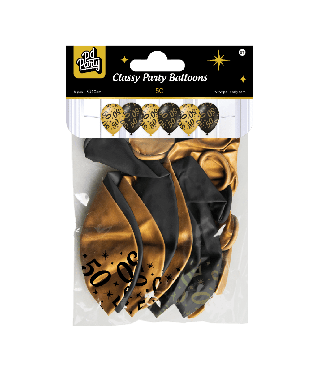 Balloner 50 år Guld Sort 30cm 6stk