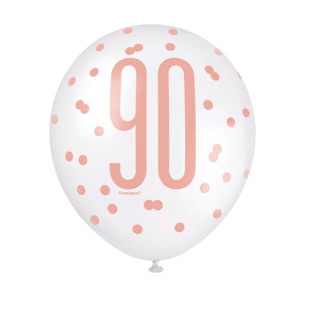 Balloner 90 år rosaguld 30 cm 6 stk
