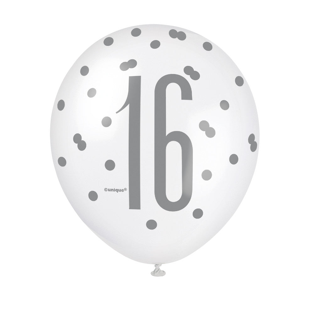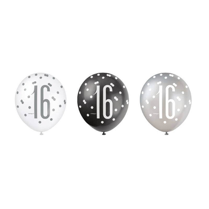 Balloner 16 år Prikker Sort 30cm 6stk