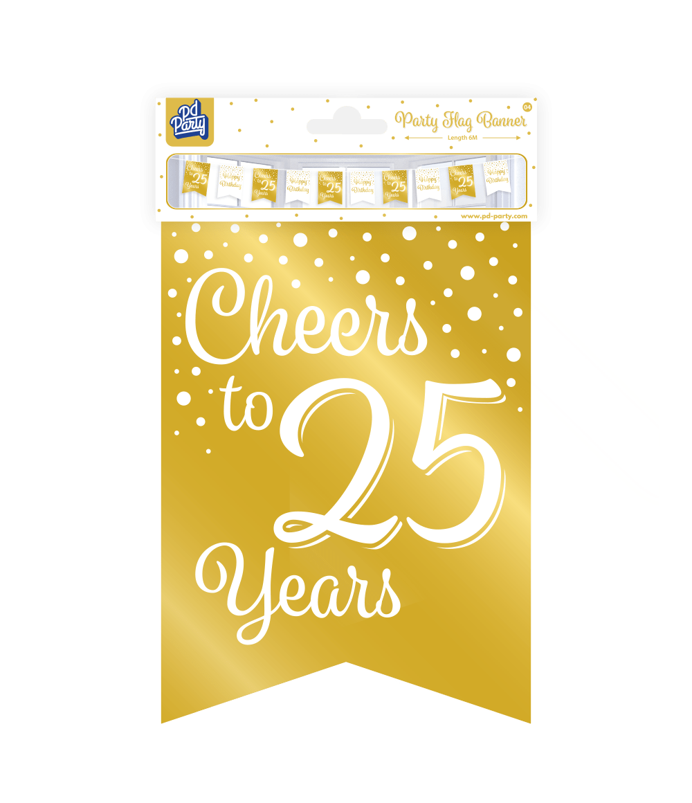 Banner 25 år guld hvid 6m
