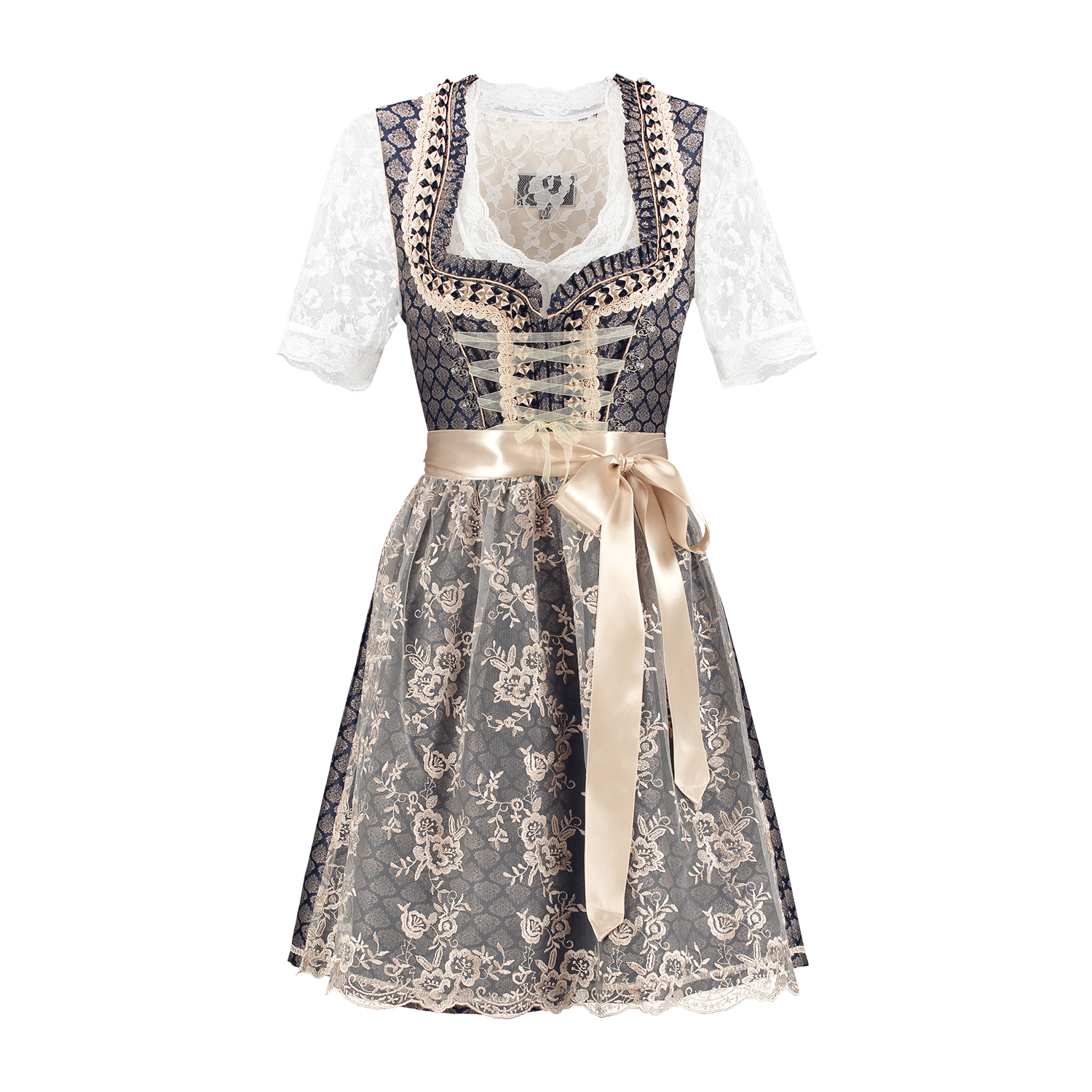 Blå Hvid Creme Dirndl Kjole Oktoberfest Damer 2 Dele