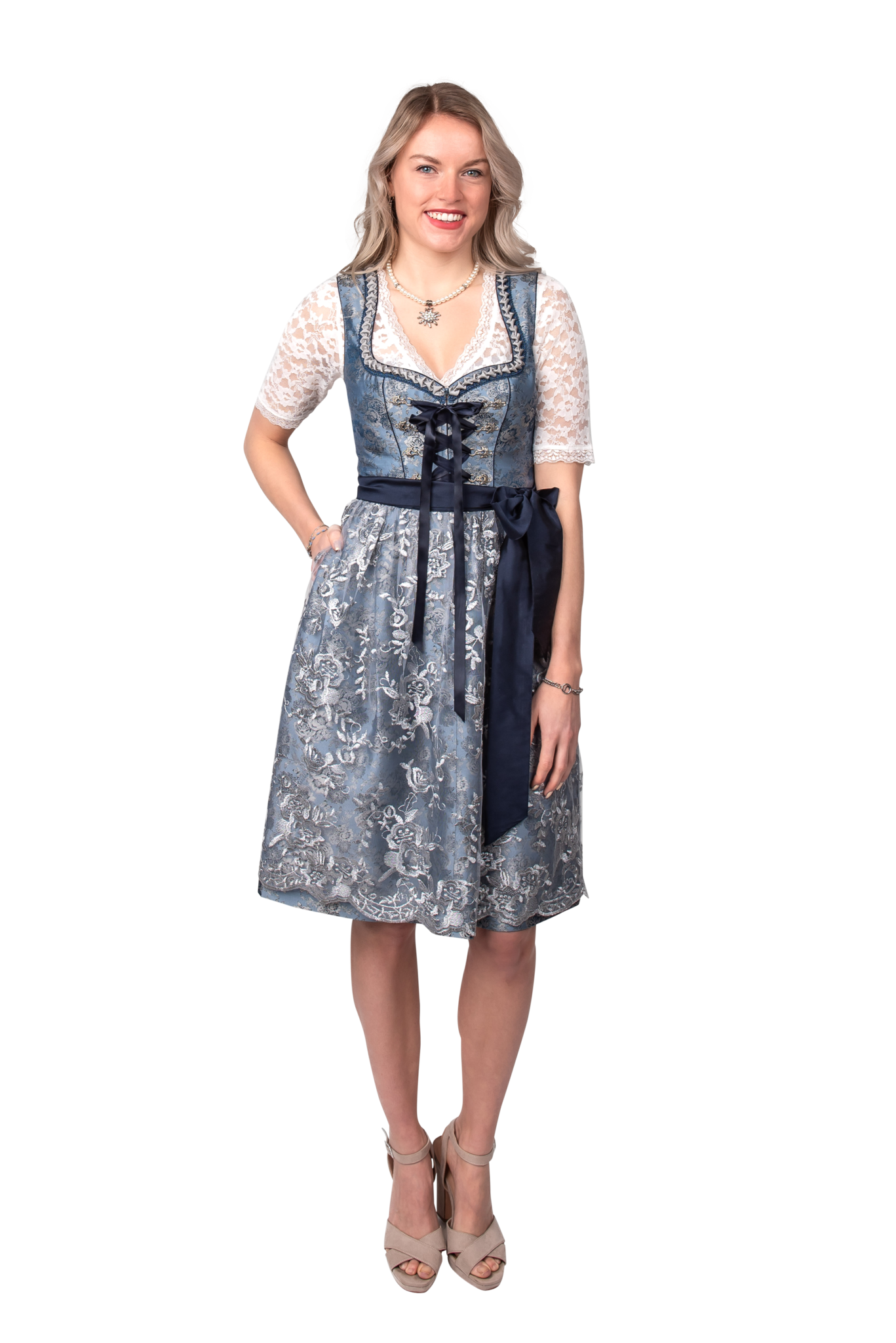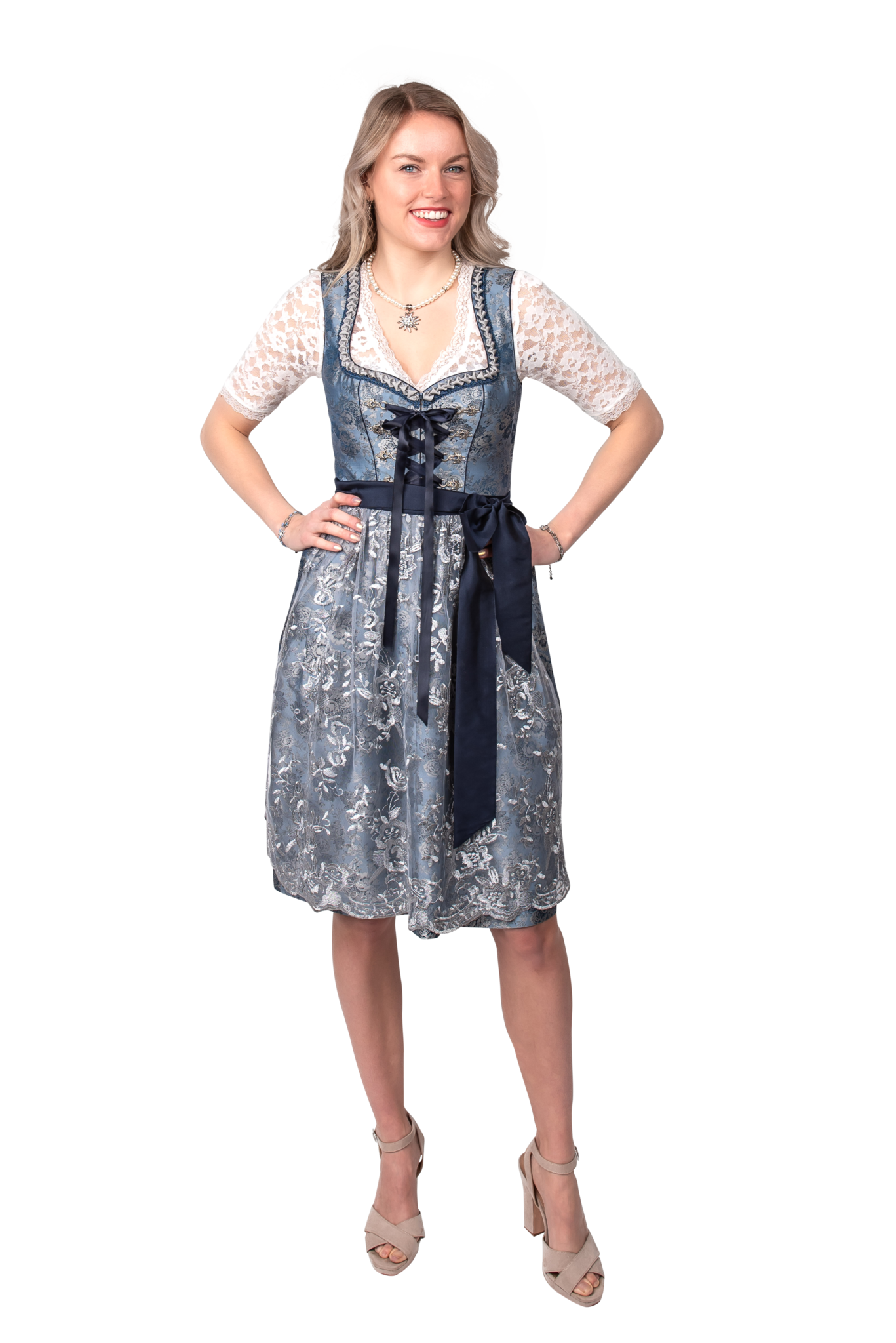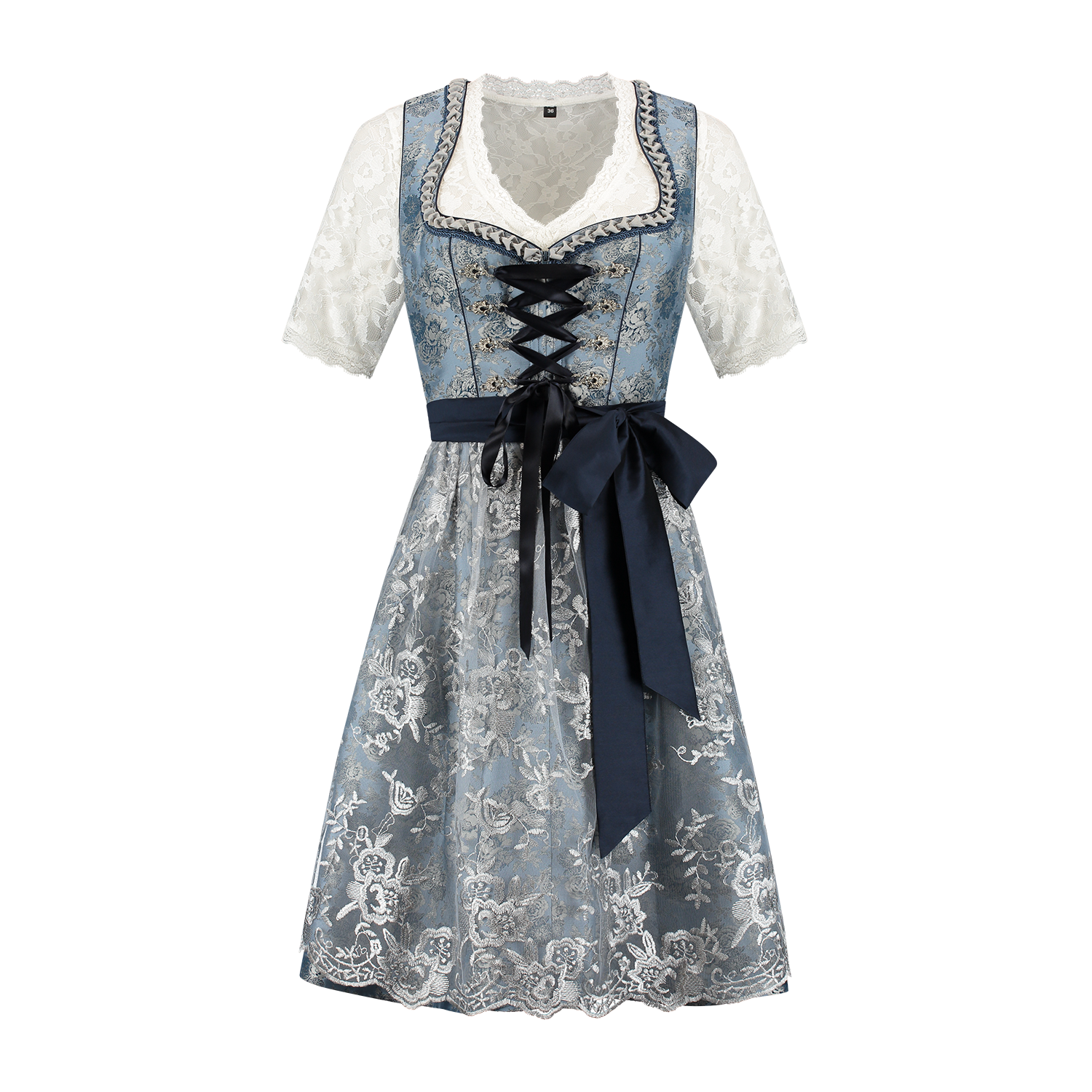 Blå Sølv Dirndl Kjole Oktoberfest Damer 2 Dele