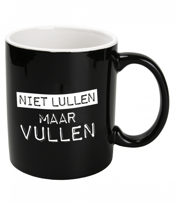Sort krus No Dicks But Fill 12 cm
