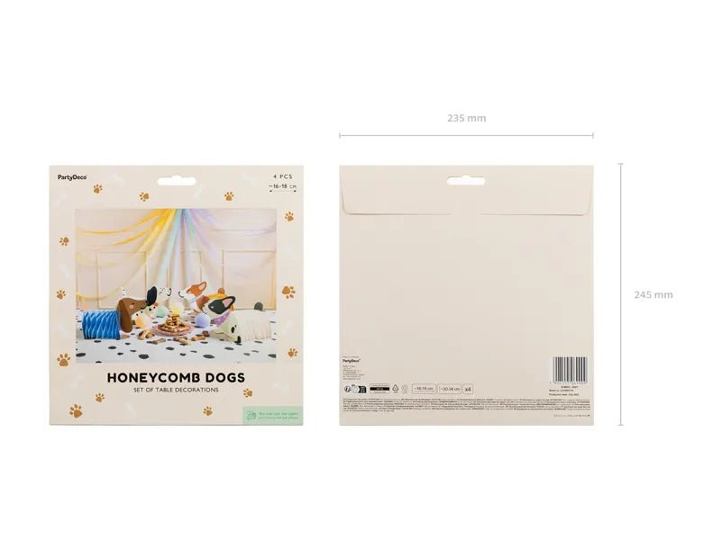 Papirhoneycomb-dekorationer Doggies, sættet består af 4 typer, længde ca. 30-34 cm, højde ca. 16-18 cm. Gør-det-selv-produkt. 4 stk.