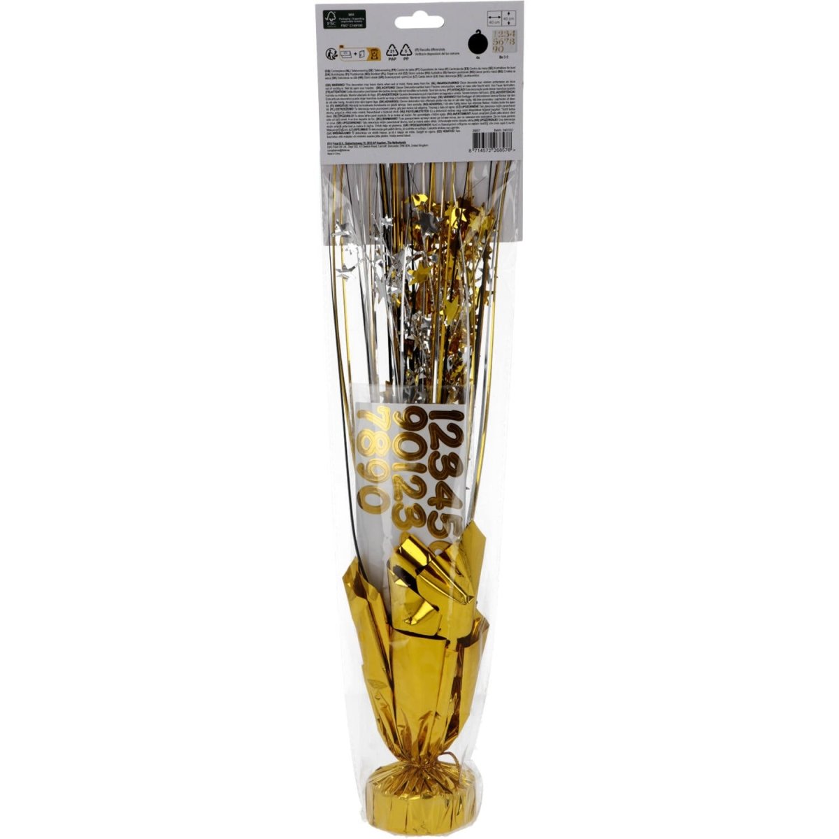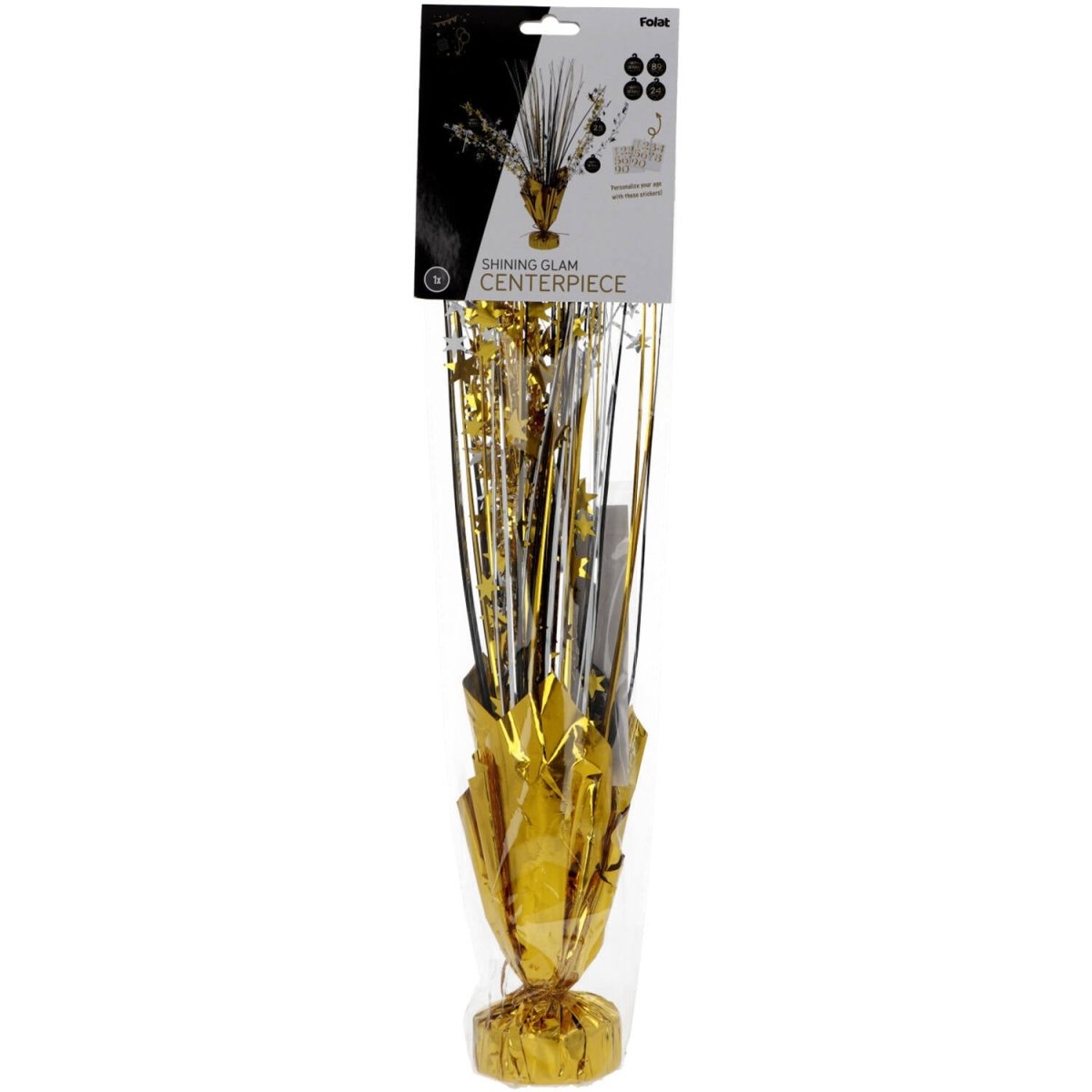 Festens midtpunkt! Dekorationsfontæne - Shining Glam. Indhold: 1 dekorationsfontæne. Kan f.eks. bruges til følgende fester/anledninger: Fødselsdag. Sæt festen på bordet med denne dekorationsfontæne i guld, sort og sølv. Du kan selv hænge de 4 medfølgende vedhæng (ca. 6 cm) på denne fontæne: 2x "HAPPY BIRTHDAY" og 2x uden tekst. På dem alle kan du sætte din egen alder med de medfølgende skinnende guldklistermærker: 8 x 0 til 9 med en højde på ca. 3 cm. Vedhængene er alle trykt dobbeltsidet og lavet af papir. Basen på denne dekorative fontæne indeholder cement. Denne vare er lavet af folie og papir.