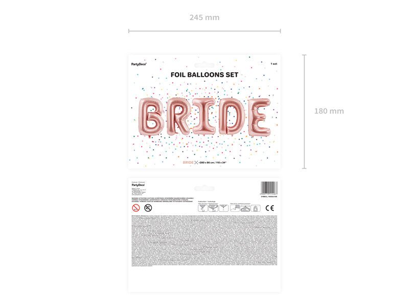 Bogstavballonsæt Bride Rose Gold tom 2,8 m