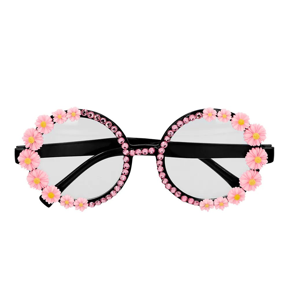 Dyk ned i Flower Power-vibes med disse muntre hippiebriller med lyserøde blomster. En blanding af retro og cool; det ultimative tilbehør til en festival, en fest med 70'er-tema eller bare for at lyse op på din dag.