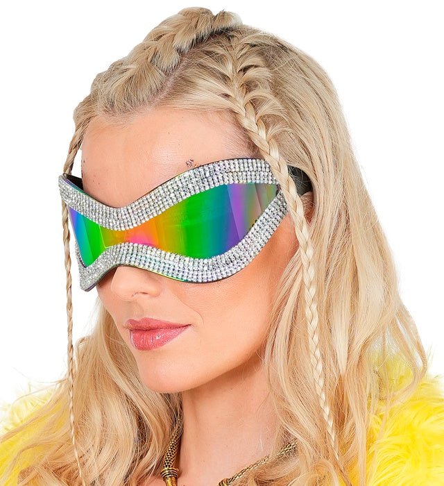 Lav et statement med disse iøjnefaldende oversize briller med rhinestones og lilla glas. Perfekt til at give dit outfit et glamourøst og legende look