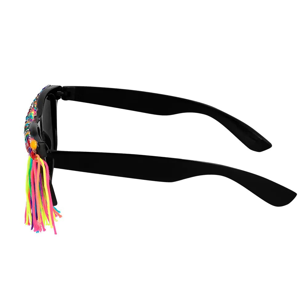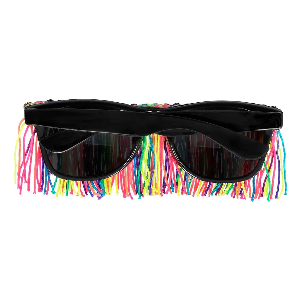 Tilføj et legesygt og farverigt twist til ethvert festlook med disse frynsede festivalbriller. Stellet har farverige frynser og skinnende sten, som giver et ekstravagant look, der passer perfekt til en festival, en udklædningsfest eller et karneval. Kort sagt, det perfekte tilbehør til et iøjnefaldende festoutfit!