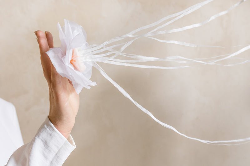 Sættet indeholder 10 papirblomster, som hver især elegant indeholder farverige guirlander. Disse håndknyttede serpentiner er den perfekte tilføjelse til enhver fest eller fejring og giver en eksplosion af farver og uforglemmelig spænding. En kraftig håndbevægelse er alt, hvad der skal til for at udløse en kaskade af serpentiner. Blomsterne er ca. 7,5 cm i diameter.