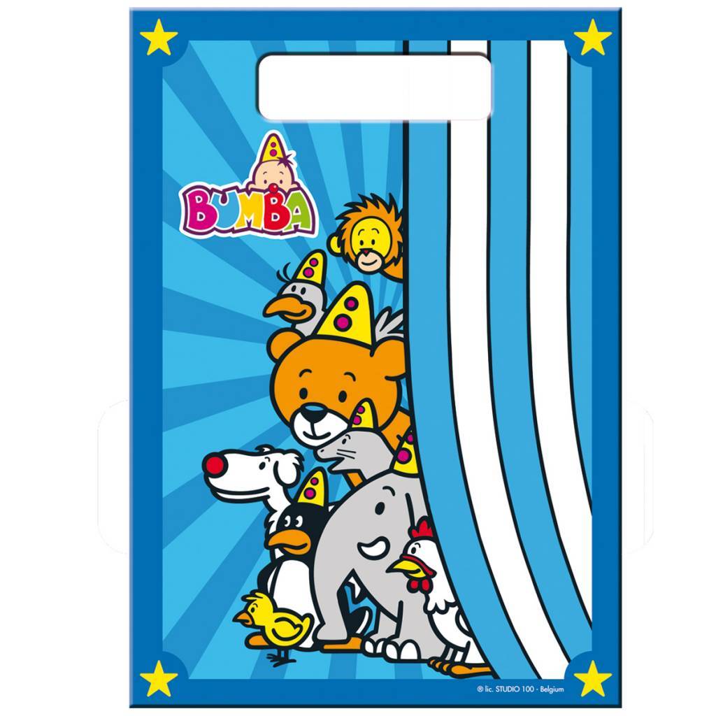 Bumba Uddelingsposer - 8 stk. Indhold: 8 deleposer. Farve: Flerfarvet. Produktets tema: Bumba. Kan f.eks. bruges til følgende fester/anledninger: børnefødselsdag. Poserne er 30 cm høje og 18 cm brede. Varen er fremstillet af plast.
