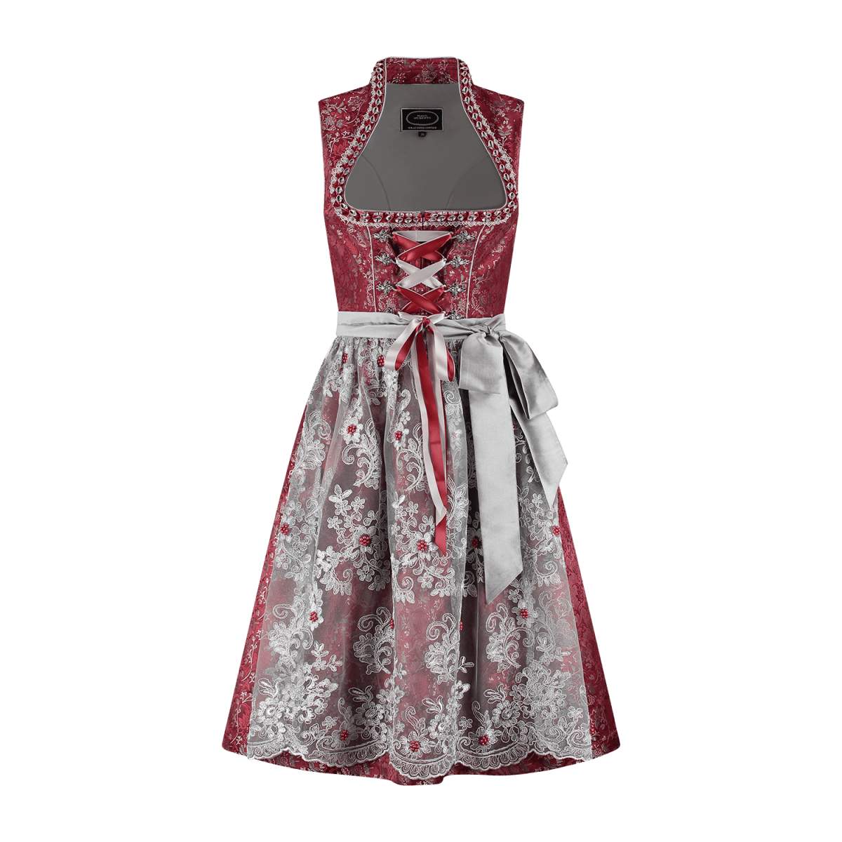 Bordeauxrød Dirndl-kjole Oktoberfest Damer Blonder 2 dele